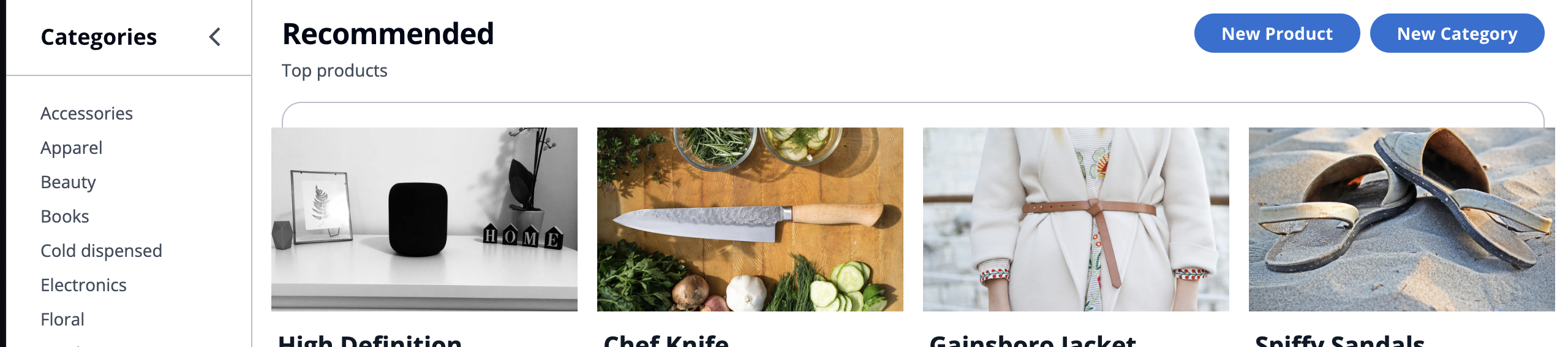 うまく読み込めればこのような形で、カテゴリと商品が表示されるようになります。