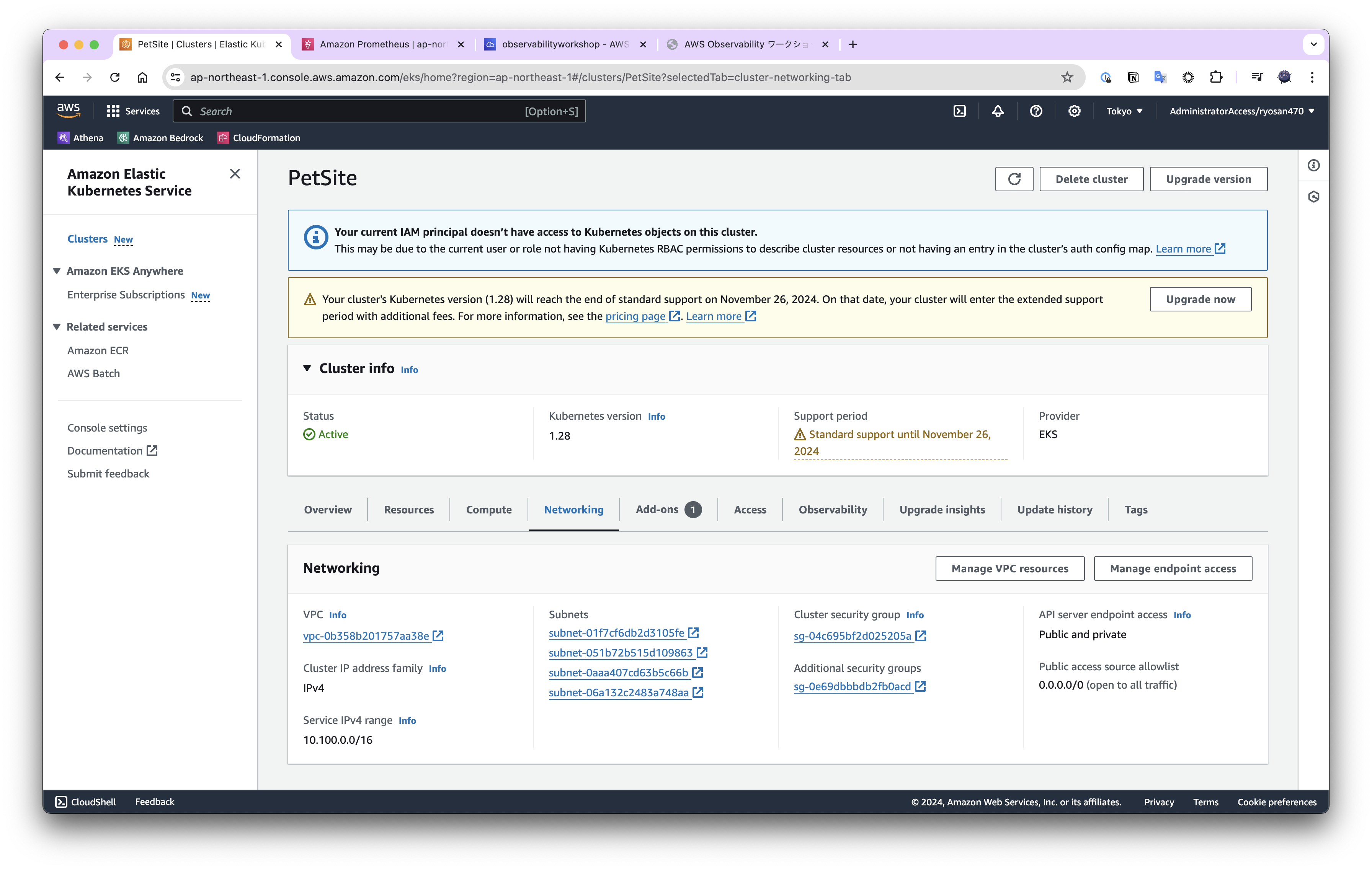 CLUSTER_ARN=$(aws eks describe-cluster --name PetSite | jq -r .cluster.arn)