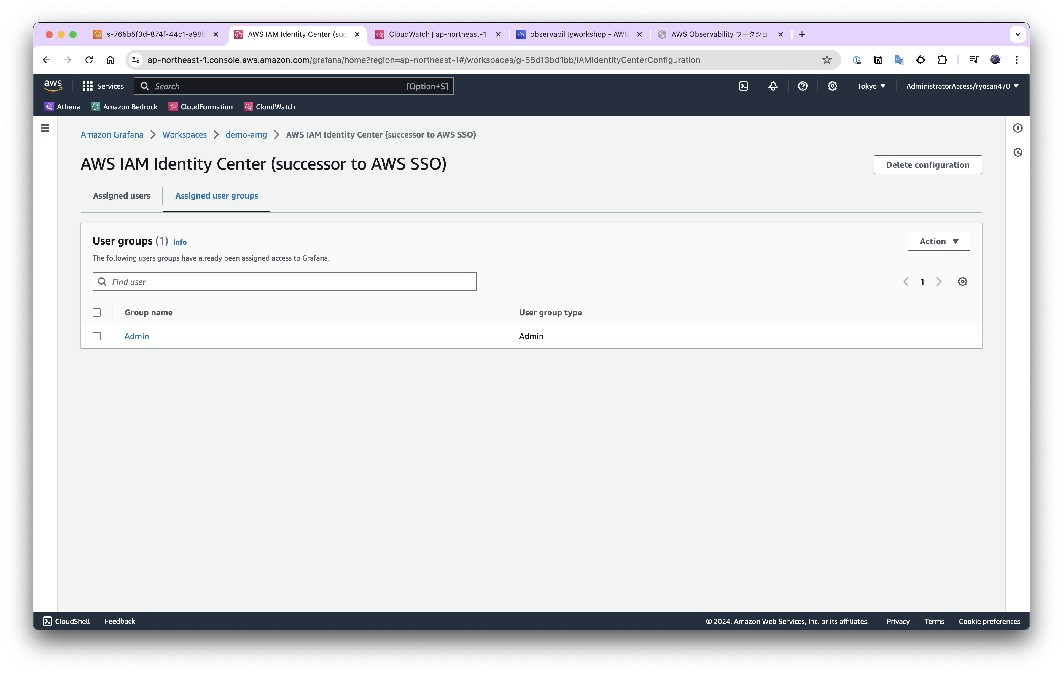 Amazon Managed Grafana の設定で AWS SSO の Admin グループを Grafana の管理者として設定しました。