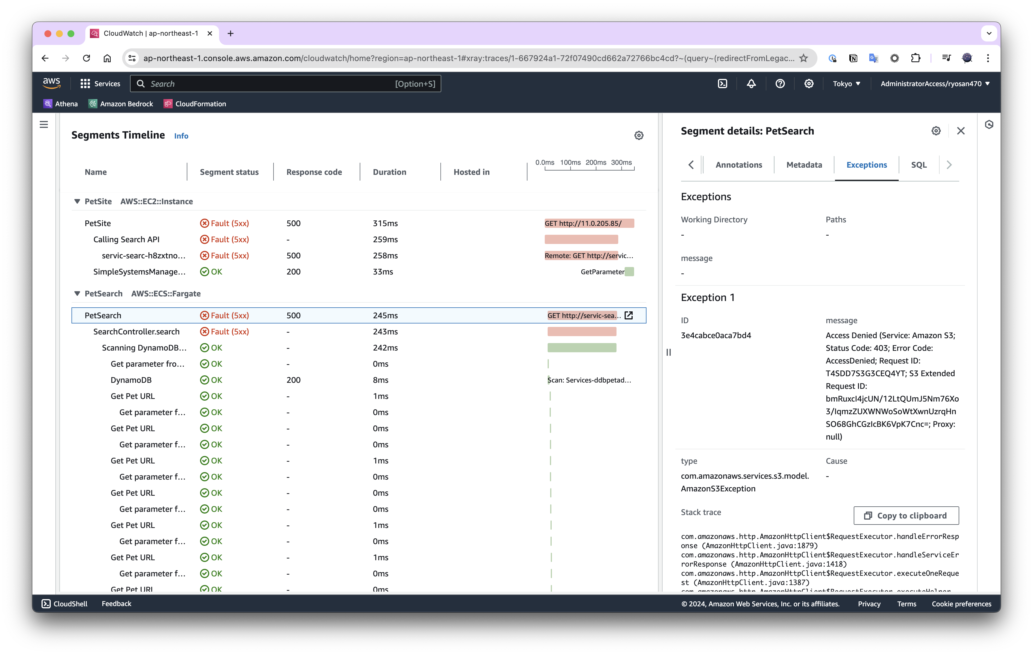 AWSReservedSSO_AdministratorAccess_daa2d0b4e715509f:~/environment/one-observability-demo/PetAdoptions/cdk (main) $